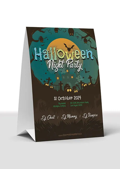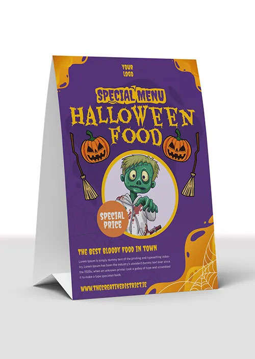 Promote your Halloween specials, menus, and events with eye-catching table tents. Perfect for pubs, restaurants, cafés, and event spaces looking to add a festive, spooky vibe to their tables and counters.
